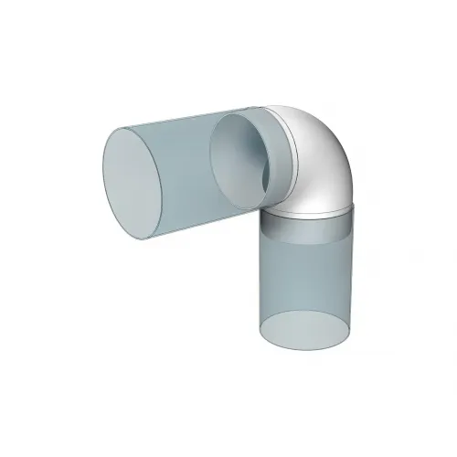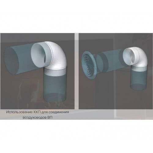 Угол устанавливается в разрез трубы и плотно закрепляется с двух сторон. Для соединения с гибкими воздуховодами используют червячные хомуты, прижимают позволяют надежно закрепить воздуховод на фасонном изделии. Благодаря плотному примыканию система способна существенно сэкономить занимаемое пространство.