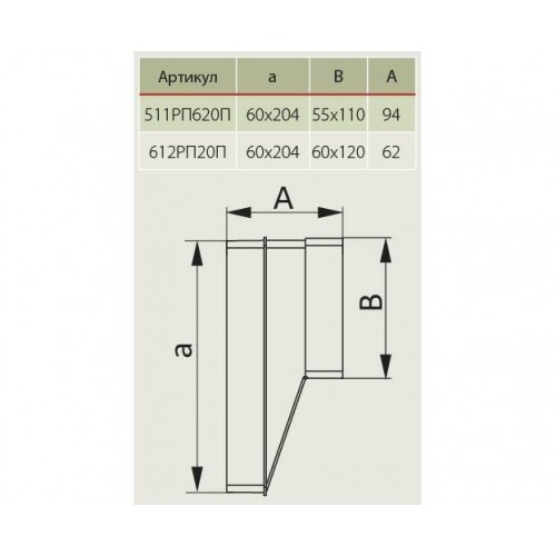 Используется в приточной или вытяжной вентиляции различных помещений для соединения плоских каналов разных сечений - 60х120 и 204x60.
