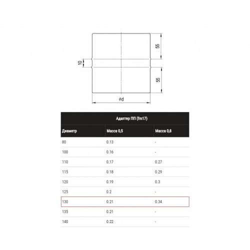 Адаптер П-П 130 внутренний 0.8 мм. из нержавеющей стали