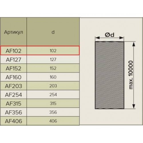 AF102 Воздуховод гибкий армированный, металлизированная пленка 70 мкм, (L до 10м)