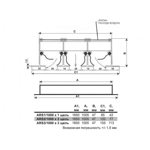 В каждой щели решеток ARS установлены две перфорированные заслонки, выполняющие роль рассекателя потока и регулятора расхода воздуха, а также две направляющие