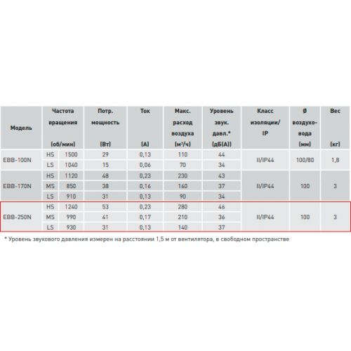 EBB 250N T 3-х скоростной вентилятор