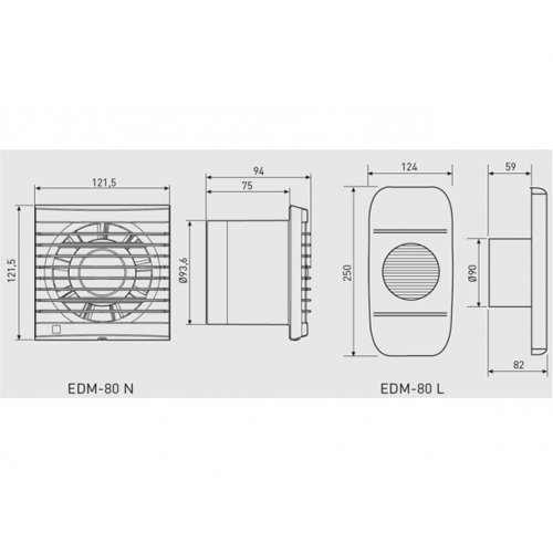 Модель EDM-80 L предназначена для установки на прямоугольные отверстия, вместо вентиляционной решетки.