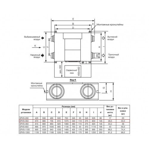 EPVS- 350 приточно-вытяжная вентиляционная установка