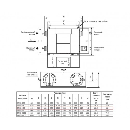 EPVS- 450 приточно-вытяжная вентиляционная установка