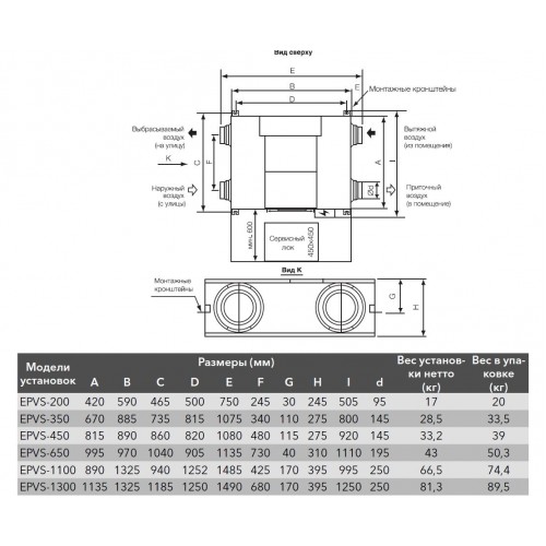 EPVS- 650 приточно-вытяжная вентиляционная установка