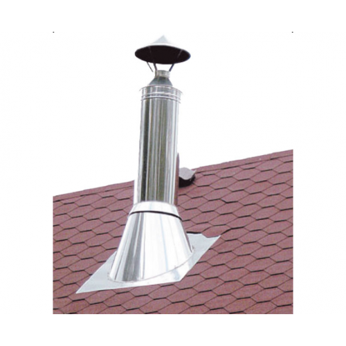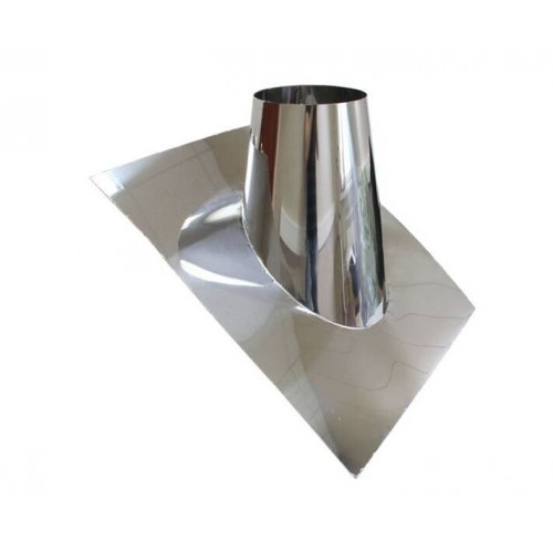 Предназначена для прохода дымохода через крышу здания. Угловая крышная разделка применяется для крыш с уклоном 45°. Допускается небольшое отклонение от данного параметра, как в большую и в меньшую сторону. Для герметизации дымохода в комплекте предусмотрен фланец Ф230мм, который как хомут обжимает трубу, тем самым предотвращая попадение воды в соединение труба - крышная разделка.