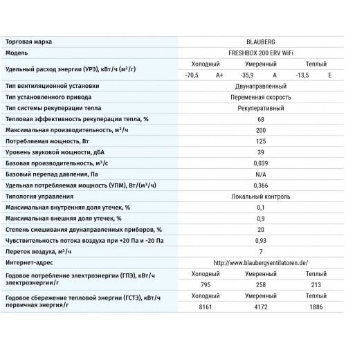 Экономичная приточно-вытяжная установка Blauberg Freshbox 200 ERV (пр-во Германия) применяется для децентрализованной вентиляции квартир, частных домов, коммерческих и социальных помещений. Для жаркого и влажного климата предлагается данная версия, оснащённая рекуператором из энтальпийной мембраны.