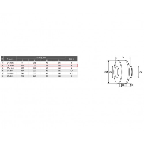 Канальный вентилятор CFs 125 S Круглый