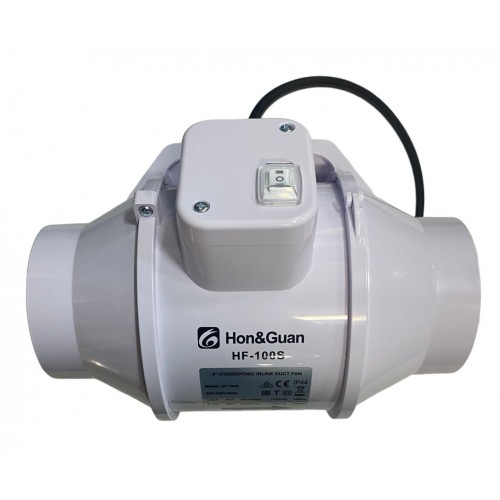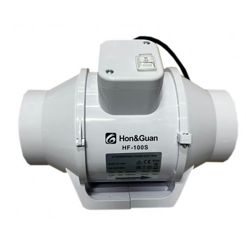 Канальный вентилятор Hon&Guan HF-100S бесшумный влагоустойчивый корпус из ABS пластика с переключателем на корпусе