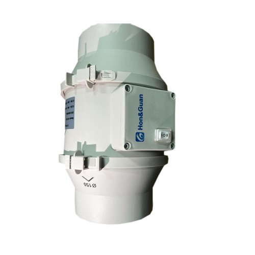 Канальный вентилятор Hon&Guan HF-150P из полипропилена со смешанным потоком с переключателем на корпусе