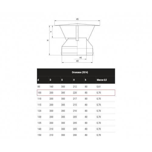 Оголовок 100/200 Феррум из нержавеющей стали 0,5/0,5 мм.