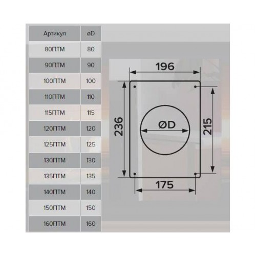 Площадка торцевая серии ПТМ, для круглых воздуховодов, от производителя ERA предназначена для присоединения приточных или вытяжных воздуховодов круглого сечения к выходу вентиляционной системы и оформления вентиляционных отверстий. Подходит для крепления круглых воздуховодов к каналу дымохода от газового оборудования различных типов. Декоративный вешний вид позволяет скрыть неровности отверстия в стене, которые могли образоваться при монтаже. Пластина изготовлена из тонколистовой стали, полимерная эмаль белого цвета. Конструкция представляет собой прямоугольную площадку 236х196х20 мм с круглым. Гибкие и жесткие воздуховоды соответствующего сечения соединяются напрямую. Применяются в производственных, коммерческих и жилых помещениях.