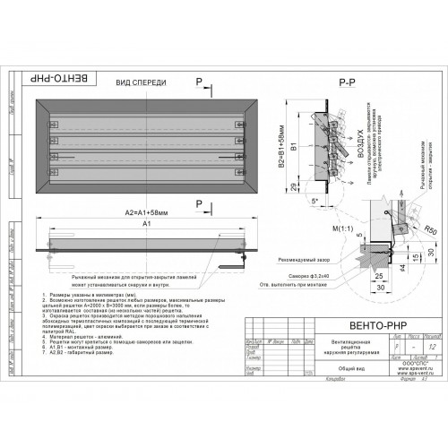 Наружные регулируемые решетки РНР предназначены для установки в воздуховоды, строительные проёмы самых различных зданий и помещений.
