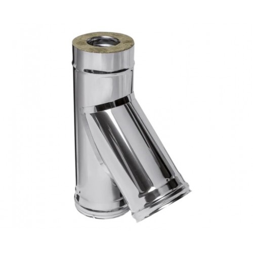 Двухконтурная, или сэндвич структура этого соединительного элемента аналогична конструктиву сэндвич труб дымоходного канала. Имеющийся теплоизоляционный слой из минерального материала минимизирует образование конденсата. Угол стыковки 135˚ и внутренняя гладкая поверхность, контактирующая с продуктами горения, делает сэндвич тройник элементом, не препятствующим прохождению дыма и сохраняющим оптимальный уровень тяги.