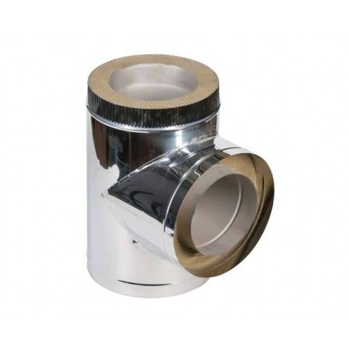 Двухконтурная, или сэндвич структура этого соединительного элемента аналогична конструктиву сэндвич труб дымоходного канала. Имеющийся теплоизоляционный слой из минерального материала минимизирует образование конденсата. Угол стыковки 90˚ и внутренняя гладкая поверхность, контактирующая с продуктами горения, делает сэндвич тройник элементом, не препятствующим прохождению дыма и сохраняющим оптимальный уровень тяги.