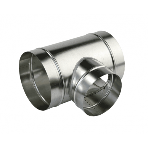 У прямых тройников одна часть (ствол) является продолжением линии воздуховода, а ответвление перпендикулярно стволу тройника (отходит под углом 90°).