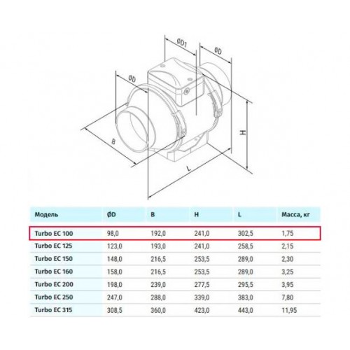 Turbo EC 100 канальный вентилятор