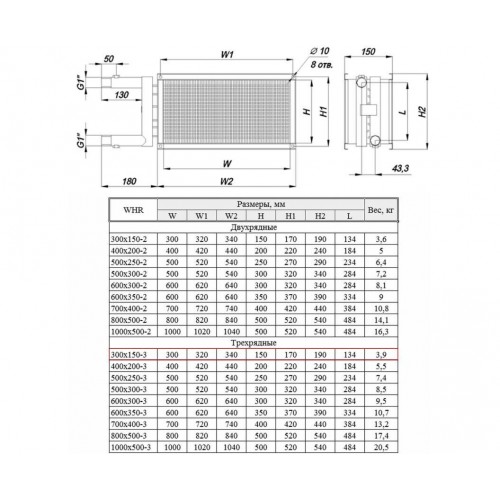 WHR 300х150-3 водяной нагреватель для прямоугольных каналов