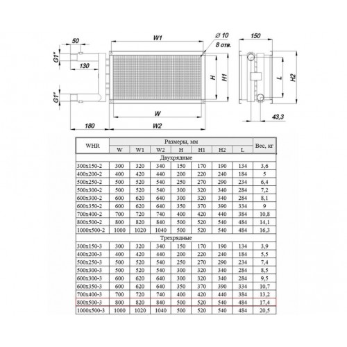 WHR 800х500-3 водяной нагреватель для прямоугольных каналов