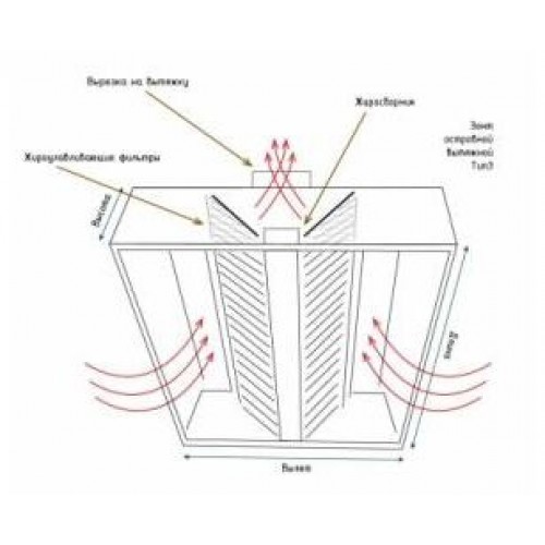 ЗВО 350x1800x1600 островной тип 3 зонт вытяжной из нержавеющ